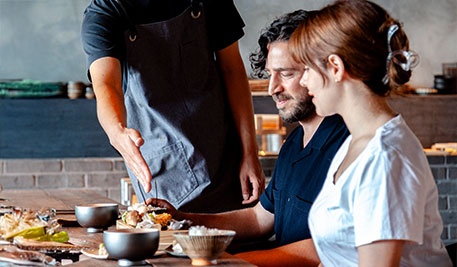 As the sun begins to set, your first day of gastronomic delights culminates with a refined sushi dinner at Sushi Kappo Wadatsumi, overlooking the sea.